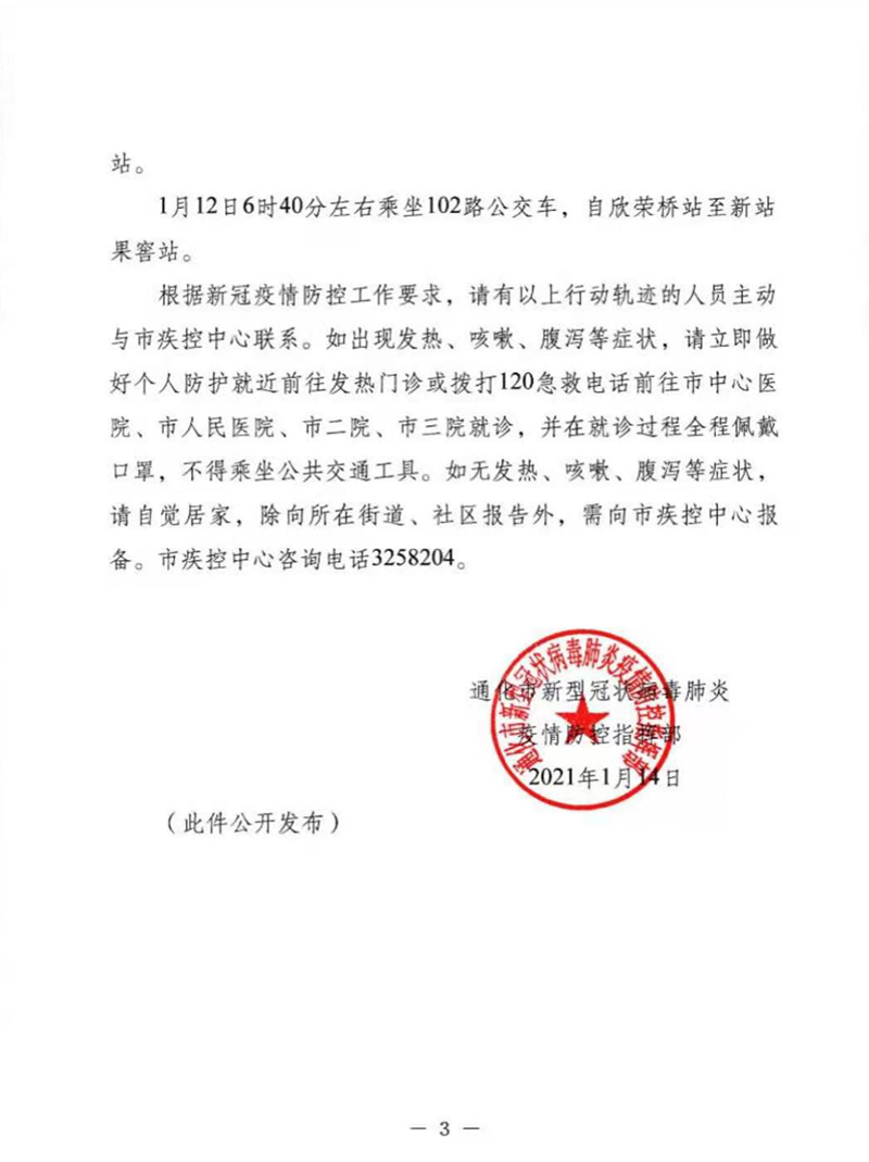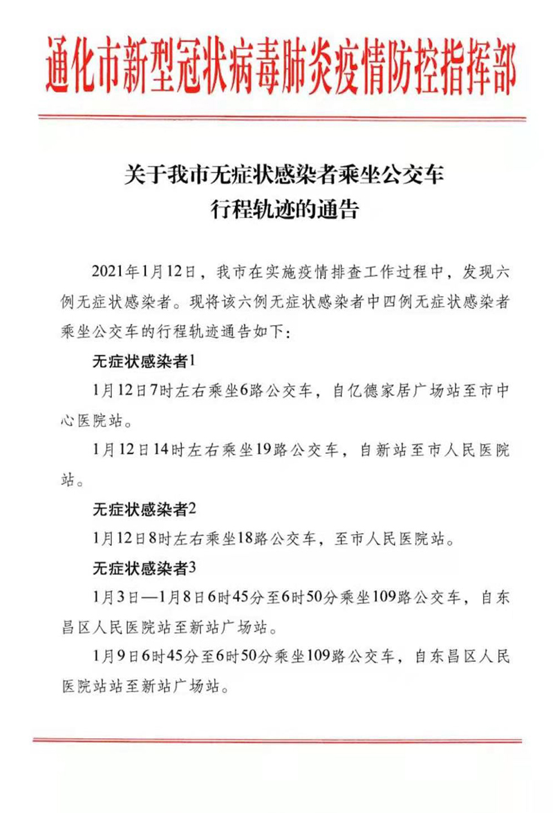 關(guān)于我市無癥狀感染者乘坐公交車行程軌跡的通告
